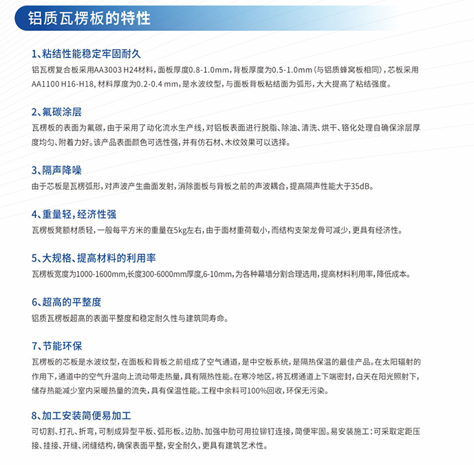 鋁質(zhì)瓦楞板將鋁合金面板、鋁瓦楞芯、鋁合金底板三層通過(guò)粘接而成的全鋁合金復(fù)合板。由于鋁質(zhì)瓦楞板的性能好,超高性能、平整度是金屬幕墻的較佳選擇。它適用于工業(yè)與民用建筑、倉(cāng)庫(kù)、特種建筑、大跨度鋼結(jié)構(gòu)房屋的屋面、墻面以及內(nèi)外墻裝飾等,具有質(zhì)輕、高強(qiáng)、色澤豐富···...